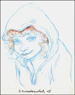 Chaque croquis a gagné cinq minutes de mon attention. Le rabat de goulot du croquiq supérieur aurait dû être plus sombre. La jeune fille au bas un peu plus sophistiquée dans son visage.