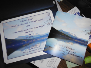 My short story, “The River,” received 1st Place in Askew’s Foods’ Word on the Lake Writing Contest, the Young Adult category. Yay! (Insert much happy dancing!) It was lovely to receive the cash prize and free conference package, but it was fiction contest judge Scott Fitzgerald Gray’s kind words and praise that made the night for me—along with the number of people who approached me throughout the evening and expressed excitement to read it. Is there anything better feeling than someone identifying with your story, appreciating it, “getting” it? I don’t think so.