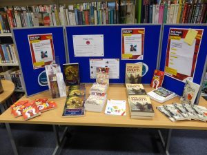 Along with many of my fellow wordsmiths, I was criss-crossing Scotland last week (19th to 25th November) to celebrate Book Week Scotland 2018, run by the Scottish Book Trust. The theme this year was ‘Rebel’. My first event was at the Brander Library in Huntly in Aberdeenshire, a lovely wood-panelled Victorian building, where the librarians had set out a very nice display of some of my books.