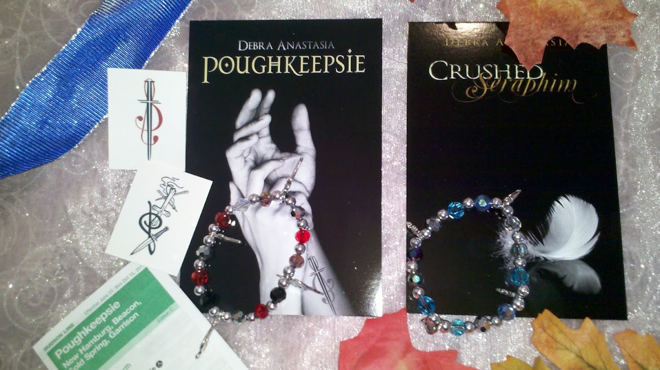 If you win, you will receive two crystal charm bracelets, pictures below, one bookmark (In the picture you can see both sides), two temporary Poughkeepsie tattoos and a signed, train schedule.