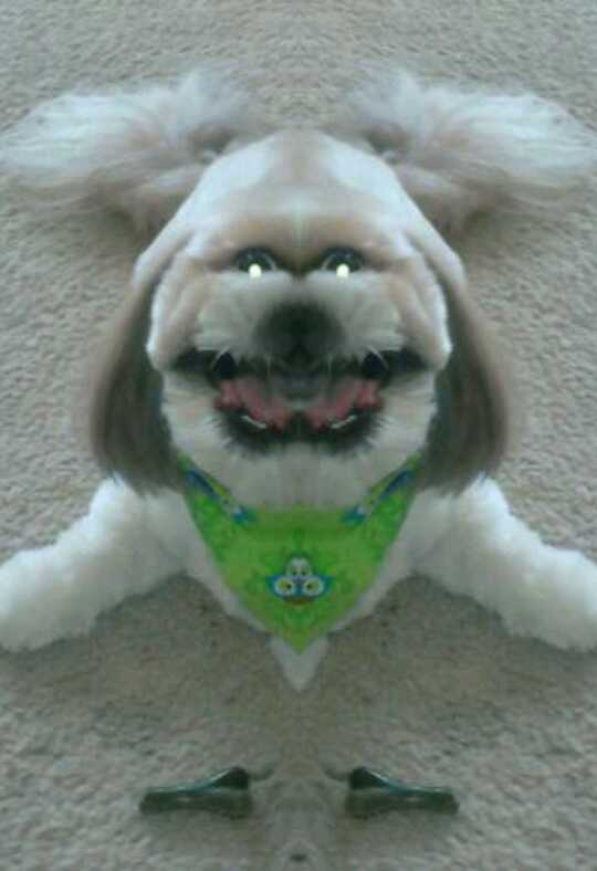 Looks kind of like a muppet. A killer muppet. Click onto the "Duke" link just above to see what he really looks like. The app on my phone I used to create this photo is called "symmetry mirror" on android.
