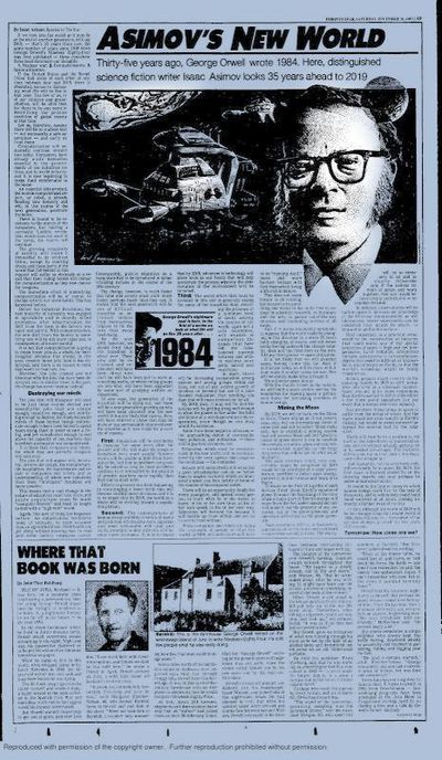 Ezek voltak Asimov meglátásai 2019-re 1983 december 31-én. A Toronto Star most több szakértő megszólaltatásával körüljárta Asimov 35 évvel ezelőtti hajdani jóslatait a talán nem túl hízelgő, Asimov, nem voltál Nostradamus című cikkben, amelyben kutatók és szakemberek értékelték az egyes gondolatokat pro- és kontra, de a végén pozitív végkicsengéssel.