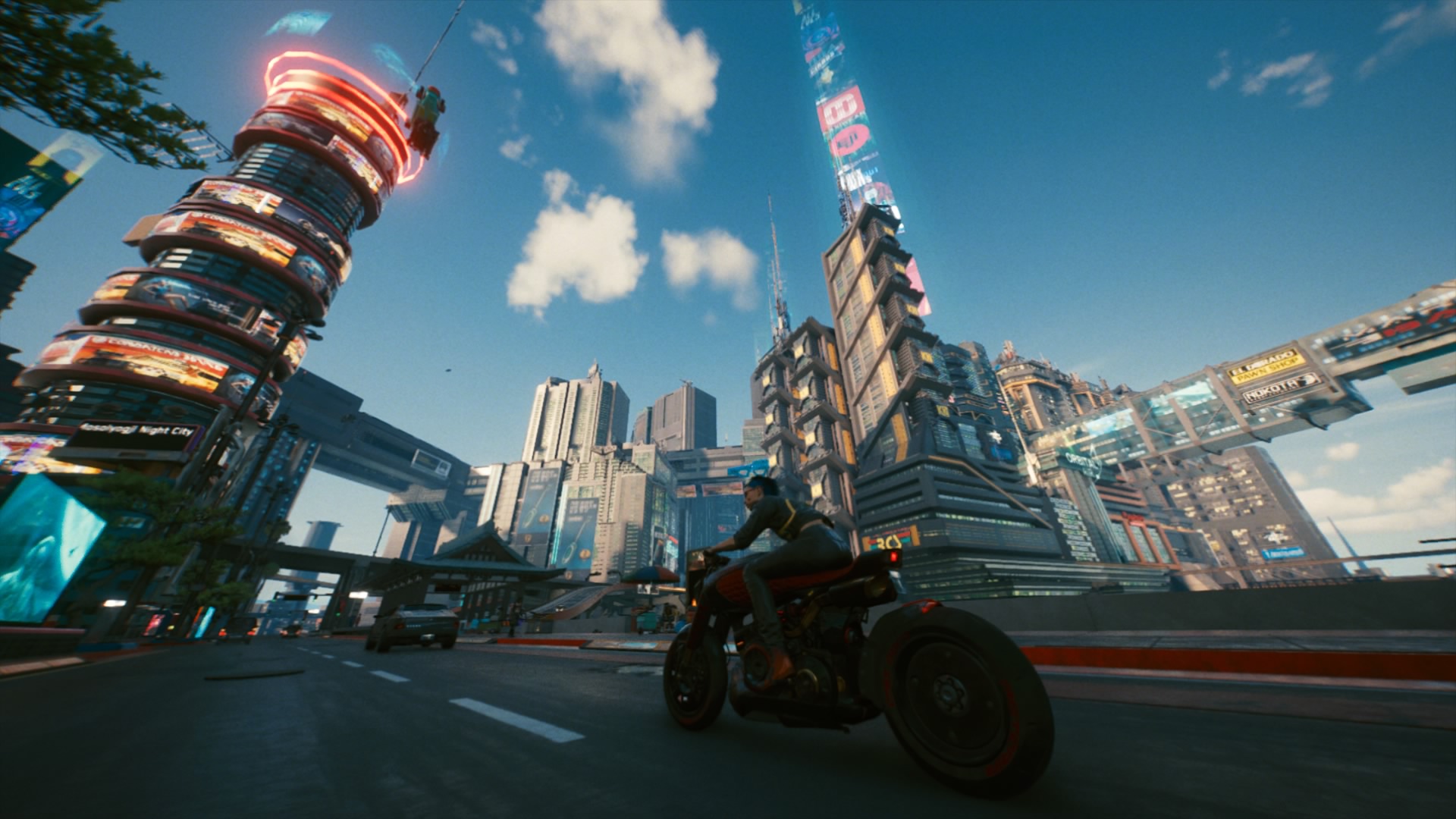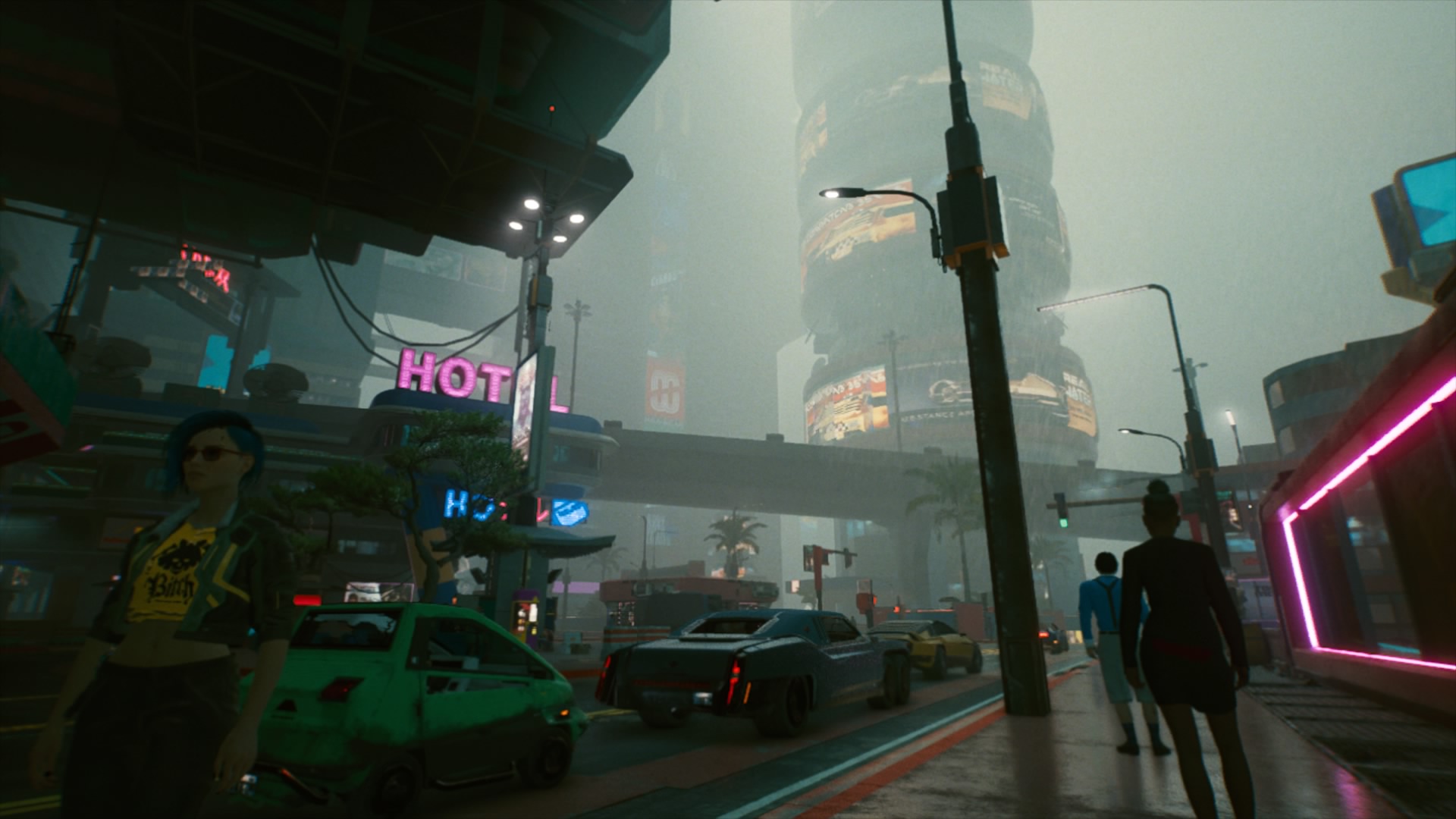 Night City ettől függetlenül egy nagyon érdekes és kaotikus szuperváros, még PS4-en is fantasztikus látvánnyal, különféle építészeti stílusok keverékével. Imádtam az éjszakai neonfények között az esőtől csillámló aszfalton száguldani, ilyenkor tiszta Blade Runner érzést keltett. A gond az, hogy ennek ellenére a játék összességében, látvány és technológia szempontjából nem tudott felnőni pl. egy Red Dead Redemption 2-höz, egy The Last of Us Part II-höz, de még egy random Assassin's Creedhez sem. A karaktermodellek 2020-ban már harmatosak, az arcmimika sem közelíti meg a 2020-ban elvárt szintet sajnos. De nagyon nem. Valójában kicsit feleslegesnek is érzem a nyílt világú környezetet, és szerintem sokkal jobban működött volna a Cyberpunk 2077 egy félig zárt, vagy lineáris történetközpontú játékként.