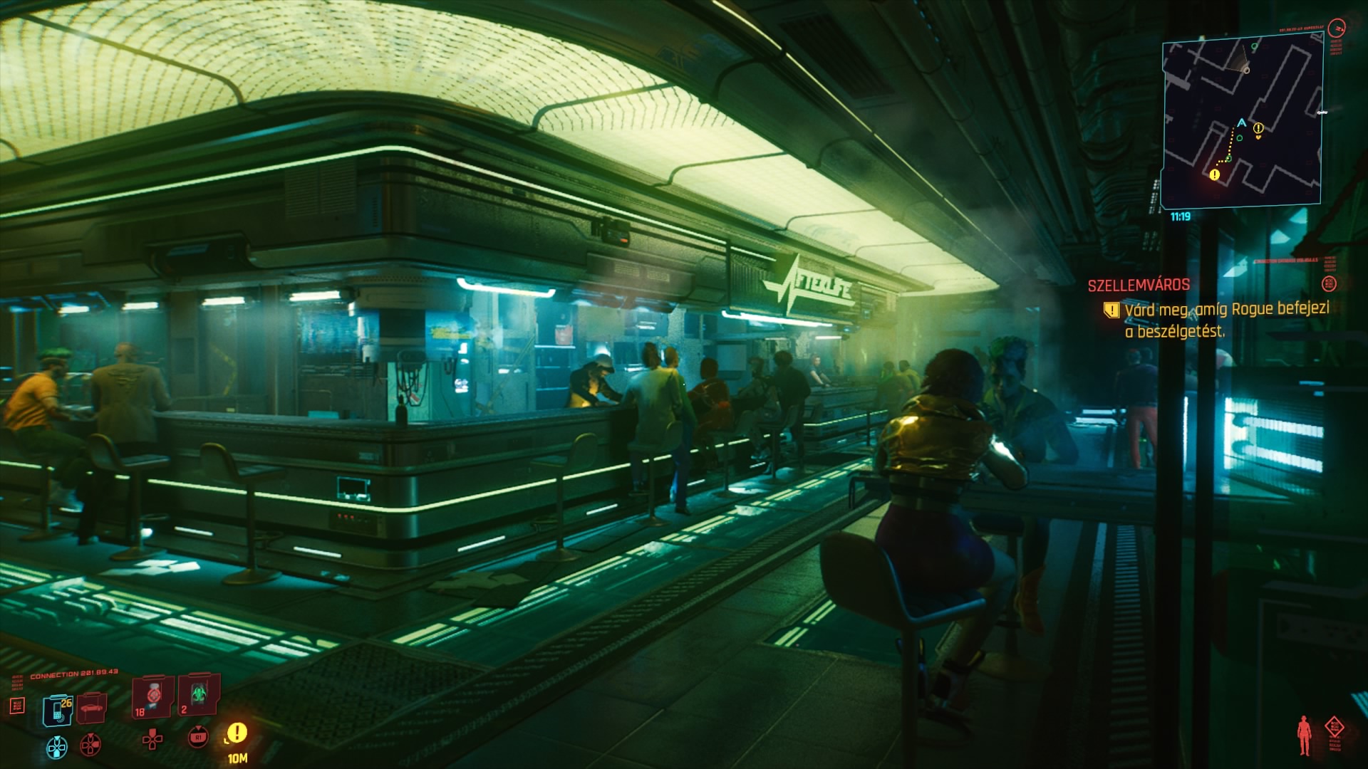 A történet számomra sokszor a Witcher 3 szintjén mozgott, okos, szövevényes, imádom az egymásba fonódó, egyedi küldetések struktúráját, amelyek abszolút életszerűnek hatnak, ahogy beszélgetésekből, telefonhívásokból épül fel minden. Sosem tudhatod, hogy egy ártatlan beszélgetésből milyen kavarodás támad. A mellékküldetések pedig legalább annyira fontosak, mint a fősztori, ha nem fontosabbak, és a történet is úgy van kitalálva, hogy a végén akkor van igazán döntési lehetőséged, ha nem csak végigrohantál a játékon, hanem megismerted a mellékszereplőket, Judyt, Panamet, Rivert, valamint Johnny Silverhandet és egykori haverjait.