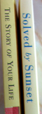 So, to organizing. I picked up two books and looked at the titles and laughed. Smart books! Reading it from left to right it said, “The story of your life, solved by sunset.” My disorganization had created a type of found poetry on the spines of book. Book Spine Poetry. It was love at first read.