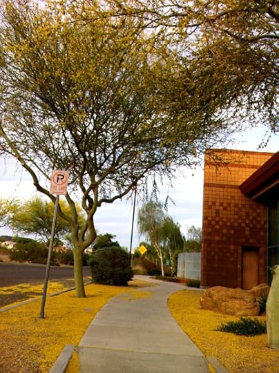 The path to the library is lined with Palo Verdes and today was a perfect day for yellow snow–the nice kind.