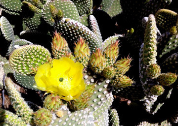 Then there is a paddle cactus in the front yard that is covered with blooms. In the morning they are bright yellow.