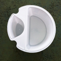 The large portion is for rinsing the brush, the smaller portion for picking up