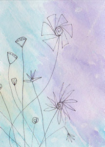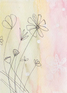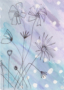 The dots are clear because the frisket goes down wet, dries, and you rub it off like rubber cement. There are no straight lines, but I like the clear effect, even if the watercolor is pale.