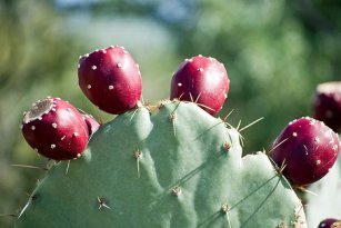 The broad flat leaves of the prickly pear cactus and the stems are edible. So is the fruit, which is often turned into jelly and a gum-drop like candy.