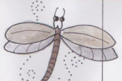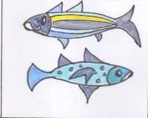 Fish done in drawing class, yellow stripe and blue face is done in Sharpie glitter.