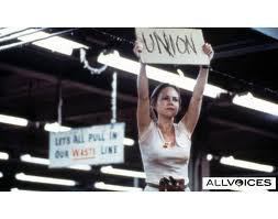 From the movie "Norma Rae," Sally Field, as Norma Rae, holding up the sign to break the sweatshop tactics.