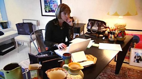 Anna Wintour's desk at Vogue. Is that a ewer and basin on the desk? And is she sitting on a metal chair? Yep. It's a $250 zinc French bistro chair. Chic. Hard, but chic.