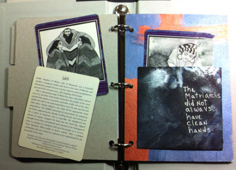 A partial set of Biblical Matriarch cards--love the black-and-white illustrations and the not-always flattering stories. A pocket holds the cards while I decide what to do with them.