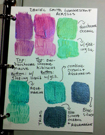 After spending 20 minutes flipping through journals to find the color swatches I'd made (in three journals) I realized that it would be practical to have all color swatches in one journal.