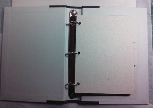 The three-ring binder has chipboard dividers, so you can divide your pages by date, by size, by content, by location.