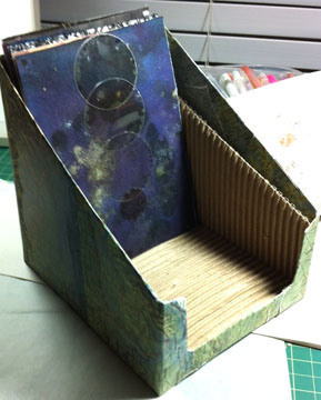 Next, a coat of gesso to cover up the nature of the box. I didn't paint the corrugated cardboard because I like the way it looks. Painting it is only going to make it look like painted-something-it's-not.