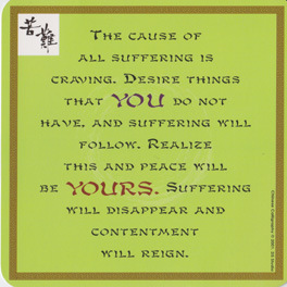 I turned the card over and it said, "The cause of all suffering is craving. Desire