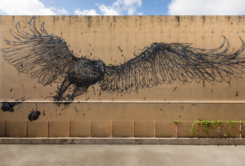 DALeast is a different kind of street artist. He creates large metal sculptures attached to buildings.