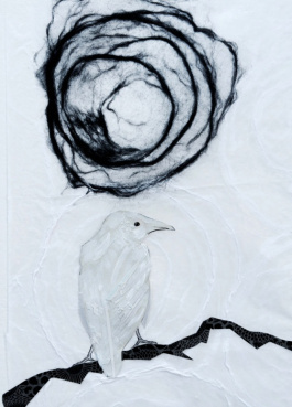 “White Crow, Black Sun,” © Quinn McDonald. Collage on handmade paper.