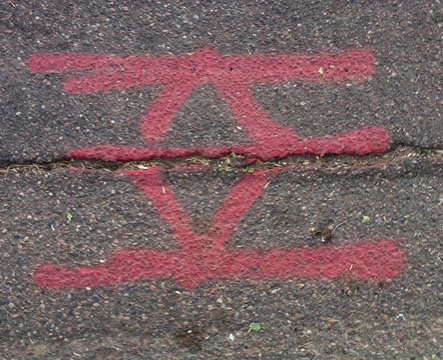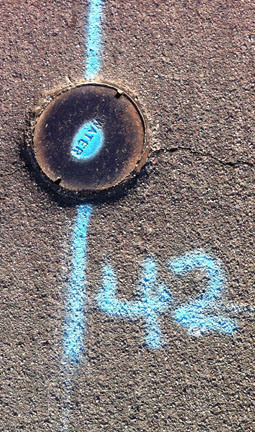 This morning on my walk, I saw interesting writing on the street. My mind went to an interesting story line–what if visitors from another planet came down and took notes on the street on what they saw and learned? What I saw on the street would be a kind of alien journal, written in code. That idea appealed to me, and I took some photos of the “writing.”
