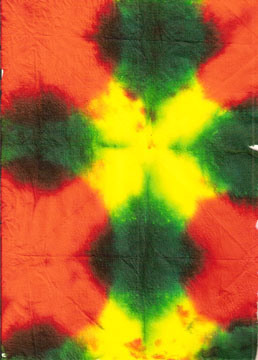 Roz’s sample of shibori–on a paper towel. Vibrant!