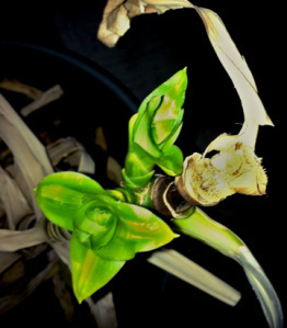 The stem crinkled. and I had to admit it was over. I put the pot on the east side of the house, in days when it was still 110 degrees in the afternoon. The top was taken into the bathroom with a skylight, and after a few weeks of touch and go, it decided to live and pushed out two new leaves.