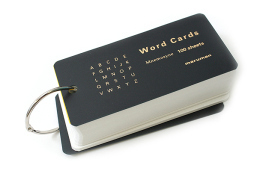 A friend gave me an gift–a toy with potential. These word cards are made by Maruman, and have the wonderful name Mnemosyne–the Greek goddess of memory. The cards are sturdy paper (or light card stock) and blank. They measure about 4 inches long by 2 inches tall. There are 100 of them, fastened with a binder ring.