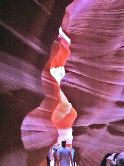 And then last week, on an assignment to teach grammar, I realized I was going to be within a few miles of Antelope Canyon in Page, Arizona. The canyon is on the Navajo Nation, tucked into the high desert, into the wall of a mesa. We traveled by jeep through deep, thick sand, and when we came to a stop, we got out and there was a red wall, with a dark shadow across it. The shadow was the entrance.