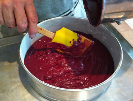 The kitchen smelled great while we waited for the cake to finish cooking. This time the smell was chocolate–and that’s a good smell any time of year. We knew it wouldn’t rise much. Those are beets in there.
