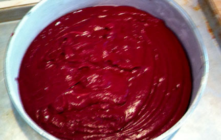 And now it was ready for the oven. The beets add the majority of the bulk in the cake, which reduces the sugar and flour.