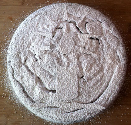 I removed the stencil pieces with tweezers to keep from spilling any sugar in the negative space. There were a few tiny crumbs of sugar. I picked them off with a damp watercolor brush.