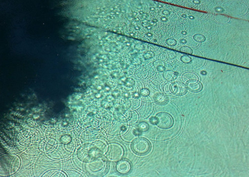 This morning, I dragged the hose across the pool and set the sprinkler to water the potted plants at the edge of the pool. The shadow made by the random drops that fell in the pool sent me back for my camera.