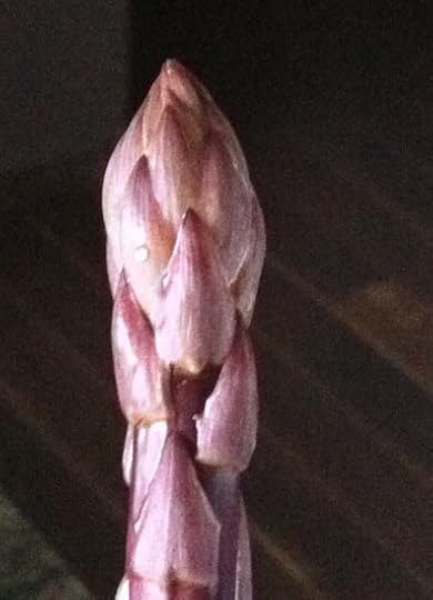 A few weeks ago, a caring, thoughtful person steamed asparagus for dinner, and I was enchanted by the color. She pulled one out of the steaming pot, and I caught it with a drop of water near the top.