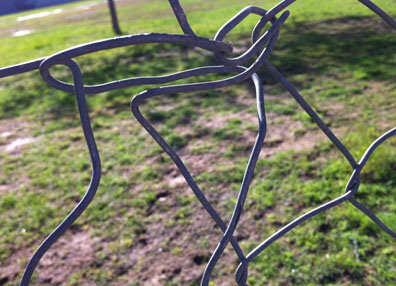 It’s a twisted fence, ugly from this view. Complicated, too.
