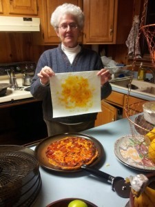 My husband is wheat-intolerant, so I make gluten free crusts from scratch. Recently, the result (although delicious) was way too greasy, so I used a paper towel to blot up the extra fat. My husband insists I have discovered "the face of Cheesus." I think it's a Rorschach ink blot test, subject to many interpretations. What do you see in it?