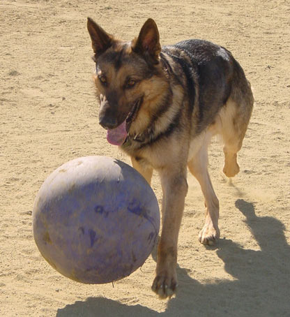 The way this works is you have to give the universe a helping hand from time to time. So both of us spoke of the “German Shepherd Dog-sized hole” in our lives. As it happened, a musician (French horn) in two of the bands Dave plays in (bass and soprano clarinet) is married to a blind man whose seeing eye dog was nearing retirement age. Seeing eye work is strenuous for dogs, both physically and mentally. It requires constant alertness, lightning reflexes, and the strength and speed to instantly pull an owner out of harm’s way. After some discussion, they brought their dog over for a visit. We got to meet Tajji (which means “my crown” in Arabic, her owner being Egyptian), a lovely, sweet-tempered German Shepherd Dog. She’s 10 years old and in good shape for her age with beautiful, strong conformation. Coincidentally, she is a sable (sometimes called “gray” or “Grau”) like Oka. In fact, except for the difference in their sizes, she looks like a feminine version of him.
