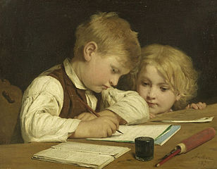 The painting is by Swiss artist Albert Anker (1831-1910)