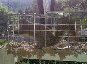 The fluffy stuff is the insulation he (or she, I can't tell) clawed up. It was extremely annoyed at being confined. The moment we released it, it scooted up the nearest tree, one of our beautiful old California oaks, flipping its tail and chittering its opinion of our hospitality "in our general direction."