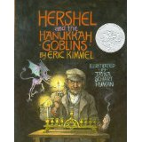 salad with tomatoes from garden (harvested green, then ripened on the counter, but still better than grocery store ones) and avocados from a friend; steelhead since they don't eat poultry or mammals; quinoa pilaf; buttercup squash from our garden; rhubarb crisp (from our garden, harvested last spring and frozen). After dinner, we lit Chanukah candles and enjoyed the traditional reading-aloud of a childhood favorite: Herschel and the Hannukah Goblins by Eric Kimmel (complete with silly goblin voices).