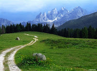 Under fir trees, through overgrown thistles