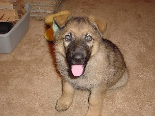 Oka at 8 weeks. The green coloring in his right ear is the Schaferhundverein breed