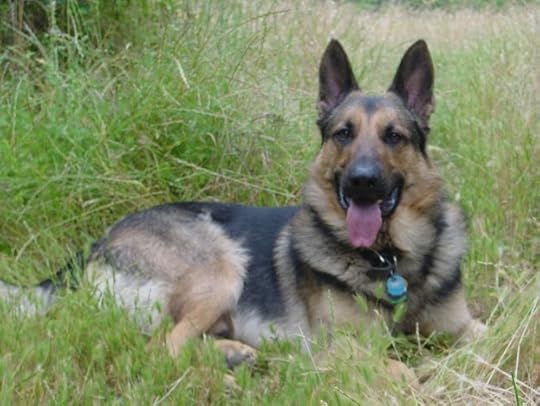 Most of my blogs are about writing and writers, my projects and those of others. But I want to step aside from that and share a very special life and passing. For those of us who are dog people, the short years we share with a canine companion enrich our lives immeasurably. Our sweet, brave German Shepherd Dog, Oka, died peacefully yesterday. He was 12 1/2, quite old for that breed, had had been battling lymphoma and degenerative myelopathy. We'd hoped to have him for a little while longer, but he developed leukemia, lost the ability to walk, and most likely had an embolism and a stroke. The vet came out to our house and he slipped away with "his people" holding him and talking to him. Also, "his cats" - all 3 gathered around, especially Oka's "best buddy," who cuddled up next to him when it was all over.