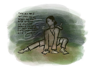 My friend and colleague, teacher Tanja Nathanael, includes "Four Paws To Light My Way," my story about a blind swordswoman and her guide dog, in her classes. She asks the students to illustrate it, and has been kind enough to forward some of these amazing drawings to me. Here are some of my favorites.
