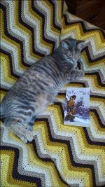 Freya, who came to us a year ago as a tiny kitten, is now a magnificent young adult. She's a mackeral-striped, dilute tortoiseshell tabby (what a mouthful), who is athletic even with only one eye. Fearless when with the family, she disappears at the first hint of visitors. Some of our friends believe she is mythical.Book News