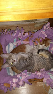 The one-eyed dilute torbie (tortoiseshell tabby) is Freya.