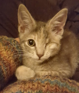We recently acquired a kitten from the local animal shelter. She's about 9 weeks old, and had one eye removed due to an injury. So of course her name is Freya, wife of Odin. (From all accounts, Freya was the ultimate party girl.) She's still settling in, isolated in my office. My daughter "The Kitten Whisperer" took this footage of me playing with her. This is the day after Freya arrived, so she's still a bit hand-shy. Since then she's become much more bold in initiating physical contact with her humans. Enjoy!