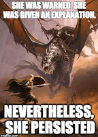 I didn’t think he was referring to the inaccurate stereotype that women can’t fight, but I also didn’t think his point applied, so I said – speaking as a long-time martial artist and instructor as well as a writer – “In my experience, that’s not always the case, especially with weapons.”