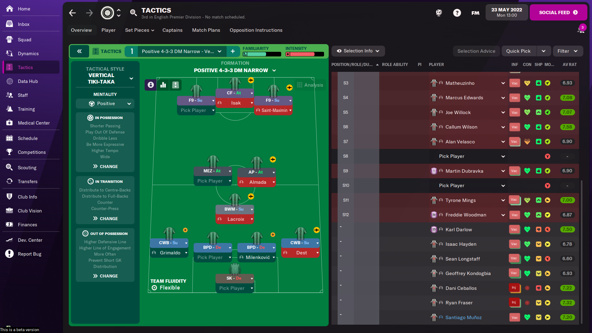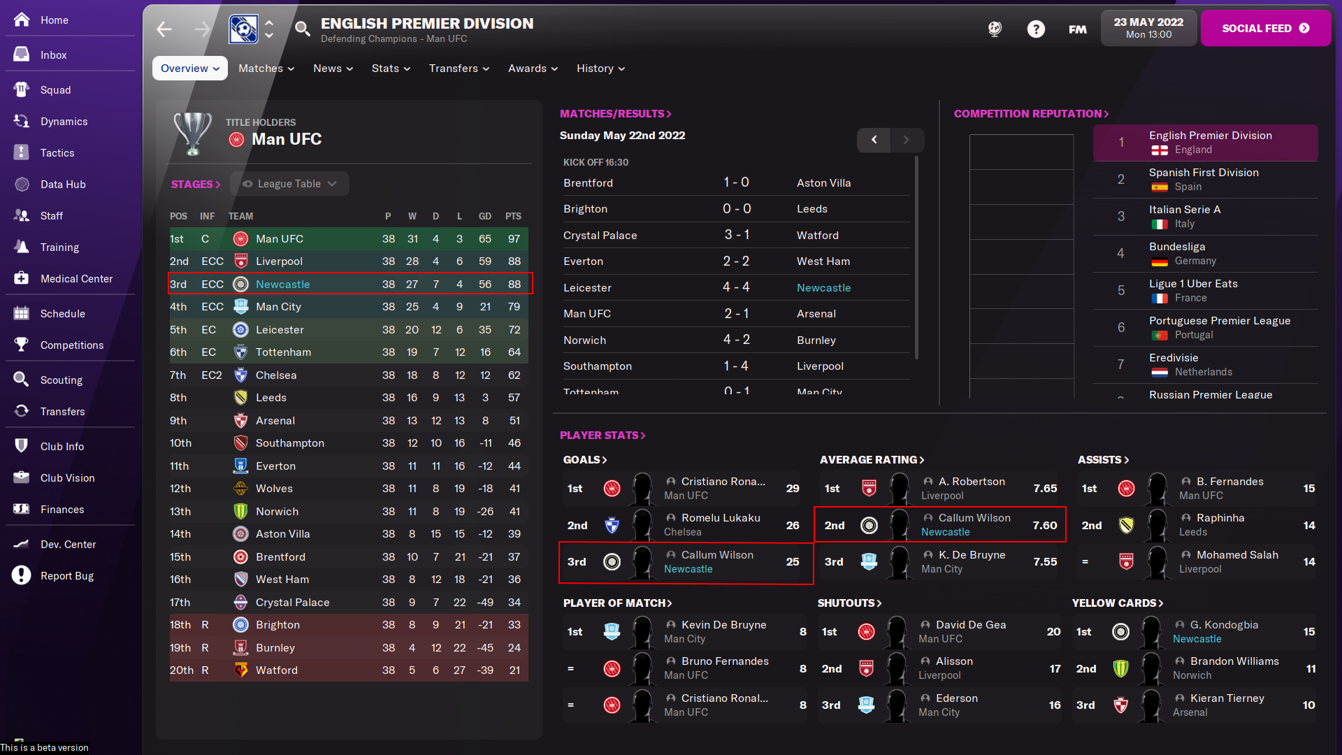 Granted I am happy to manage Top 4 in the first year, especially since Saint-Maximin had a really badly timed 2 month injury during Dec-Jan. Callum Wilson was insane, even given where he played in the system I use being a goal fiesta spot for just about anyone.
