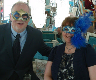 To cap the evening off, they had a farewell masked cocktail party before dinner, so of course I didn't need an excuse to buy another Venetian mask and even Simon bought one this time! One of the pleasures of cruising on a small ship is meeting other guests from around the world and we enjoyed some good company from Australia, America, Canada and England. Simon's work colleagues had arranged for a bottle of Champagne and chocolates to be delivered to our stateroom for our anniversary and we enjoyed sharing the special Champagne toast at dinner with the Australian couple that last evening.